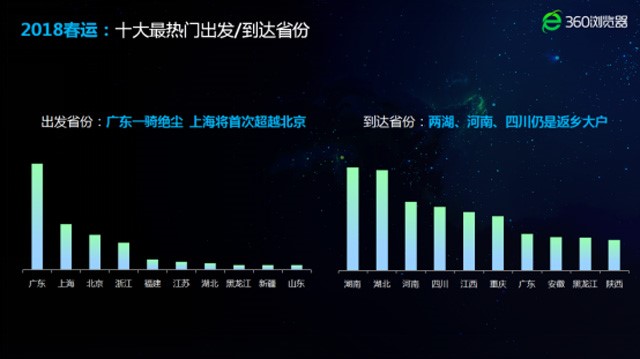 據(jù) 360瀏覽器發(fā)布的《2018春運(yùn)預(yù)測報(bào)告》,預(yù)計(jì)“2018年春運(yùn)期間,廣東、北京、上海、浙江等地市出發(fā)的車票最為難搶,其次是福建、江蘇等地,其中,最擁堵路線將仍被廣東、浙江、上海等東南沿海省市包攬?!钡赜蛏希w呈現(xiàn)“北松南緊”的趨勢。