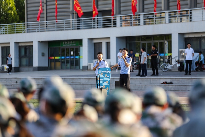 圍繞易受騙新生群體發(fā)力,結(jié)合暑期軍訓(xùn)安排,7月上旬,我們?cè)谳爡^(qū)高校組織多場(chǎng)“反詐宣傳走進(jìn)軍訓(xùn)場(chǎng)”安全教育快閃活動(dòng),利用軍訓(xùn)間隙,采取“反詐靈魂八問(wèn)”“九個(gè)凡是”等互動(dòng)性強(qiáng)的“小快靈”面對(duì)面宣傳,向四千多名學(xué)生開(kāi)展暑假前最后一堂“安全課”,給暑期安全增設(shè)“保險(xiǎn)”,豐富“警學(xué)聯(lián)動(dòng)、攜手宣傳”的品牌,獲得師生好評(píng)。